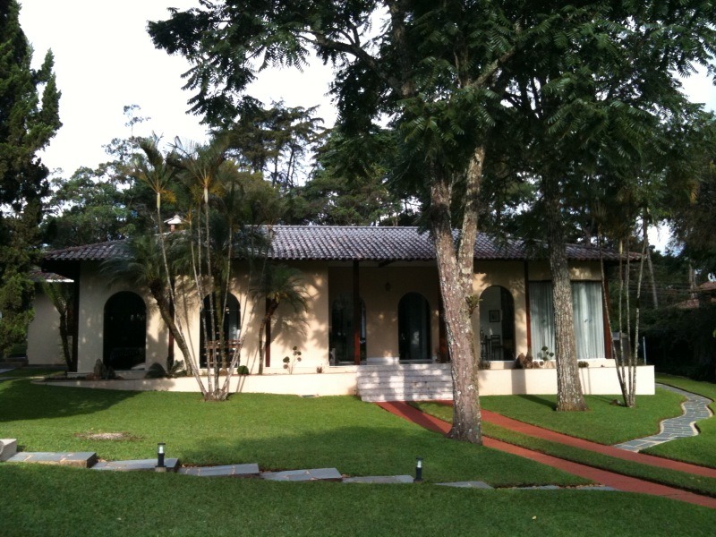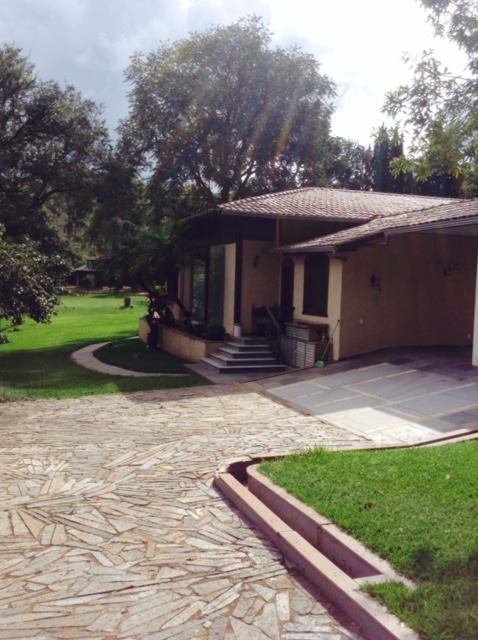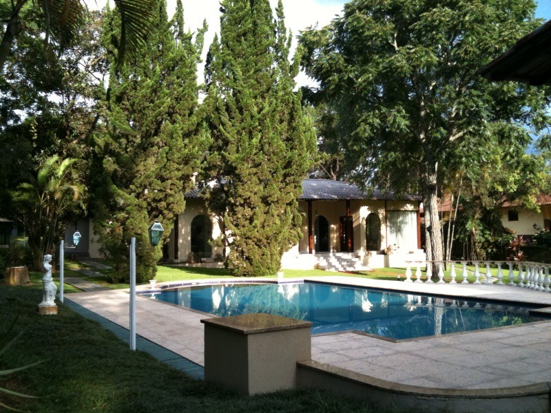Casa com piscina no condomínio Miguelao, portaria B com 3 quartos, sala com 7 ambientes, garagem, churrasqueira, vestiários, paisagismo, capela.