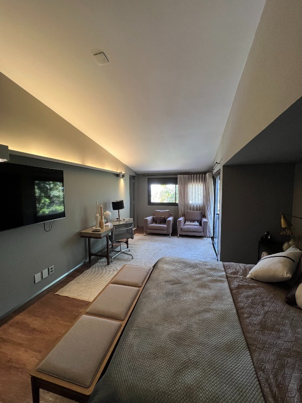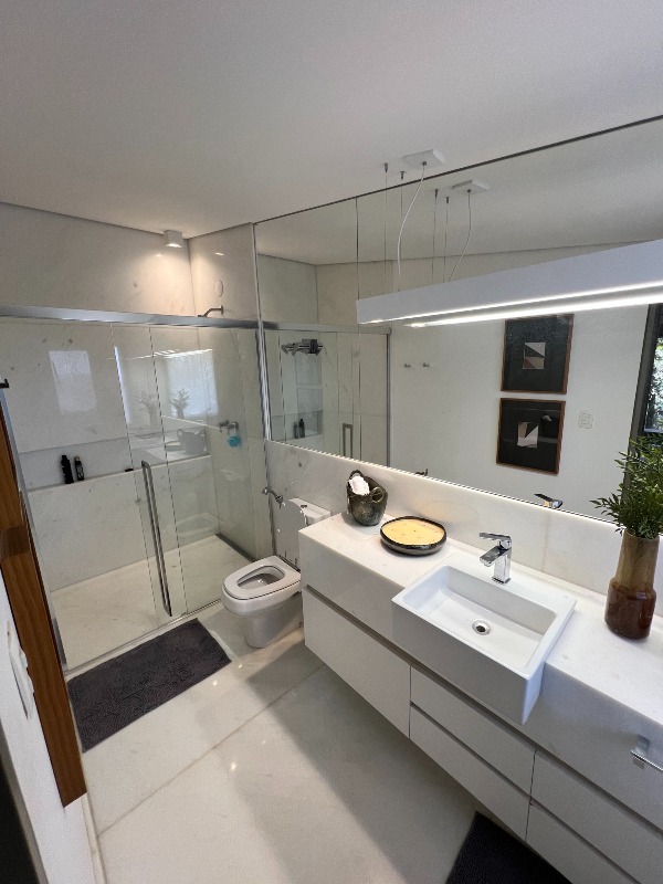 Ampla infraestrutura para morar com conforto e privacidade. Área interna de 586 m² em terreno de 1.250 m², distribuídos em 6 quartos, 4 suítes, 2 salas e 7 banheiros, além de varanda e espaço gourmet. A casa é mobiliada e conta com armários em vários ambientes, closet, despensa, DCE, lavandaria, aquecimento elétrico e solar, cabeamento estruturado, TV a cabo, internet, alarme, interfone e portão eletrônico. Lazer completo com academia, piscina, sauna, churrasqueira, quintal, gramado, jardim e espaço para convivência.